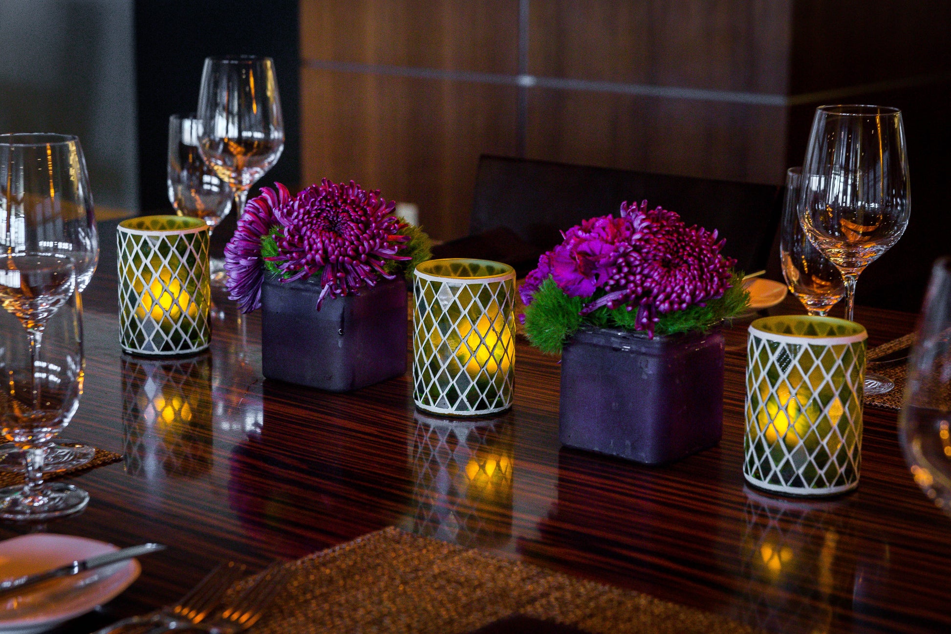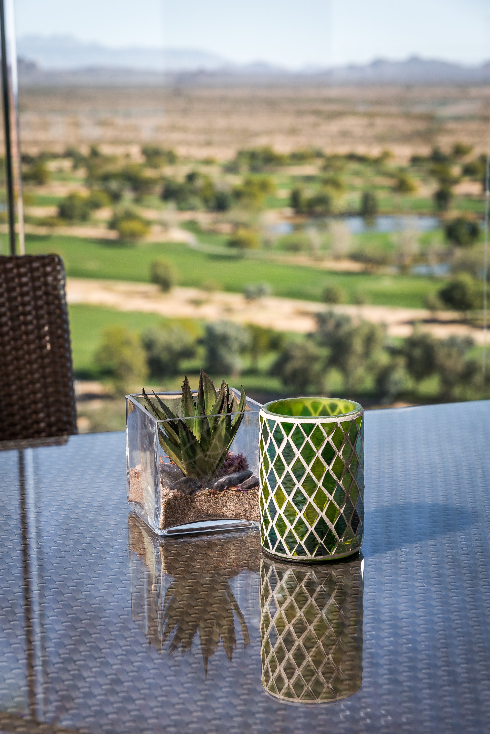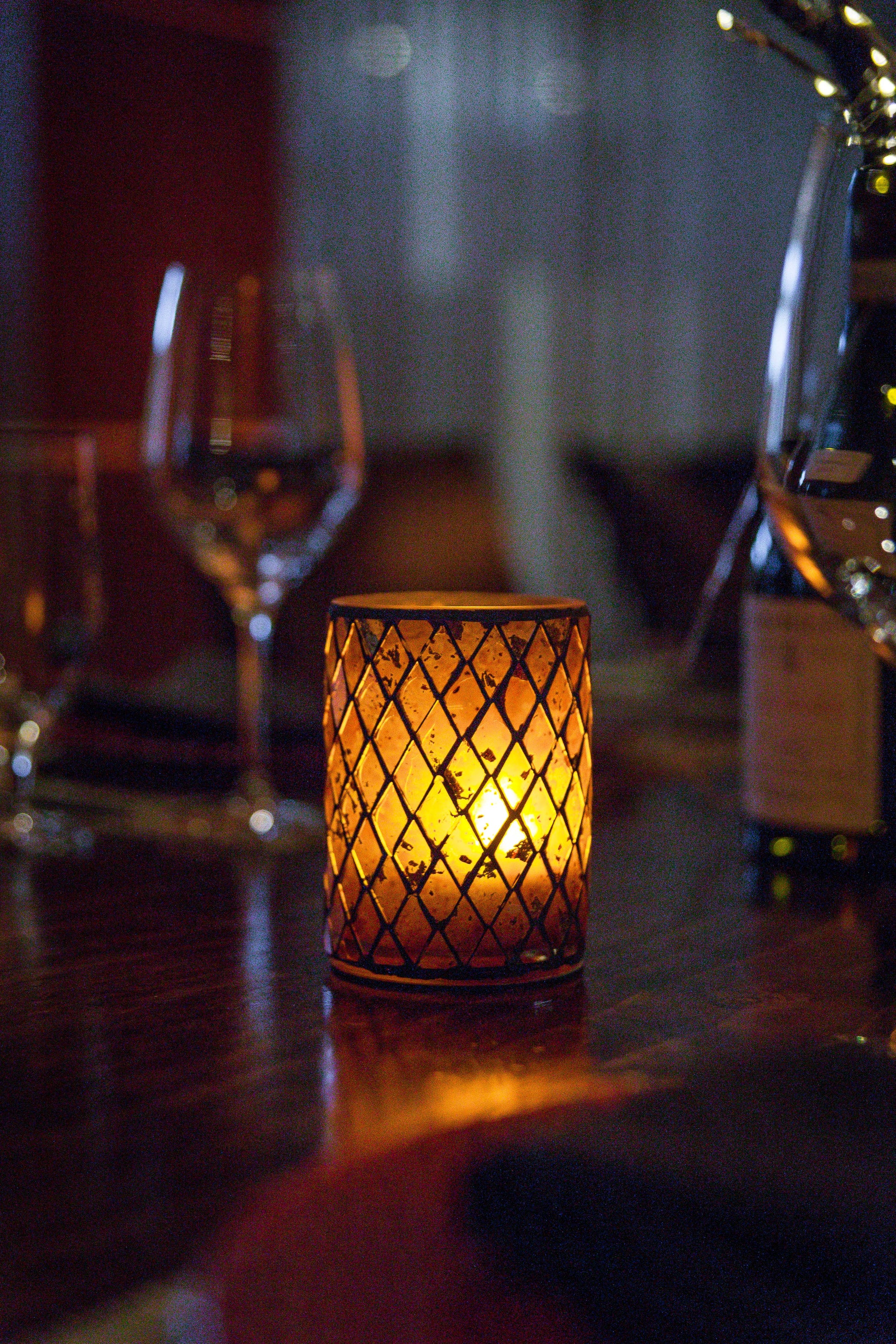 Enhance your dining experience with our exquisite hand-tiled glass candle holder, available in elegant amber and vibrant green. This unique piece not only serves as a stunning centerpiece but also complements various restaurant, bar, and lounge settings, creating an inviting atmosphere. Perfectly designed to hold a candle, it adds a warm glow to any table, making it an essential addition to your decor.