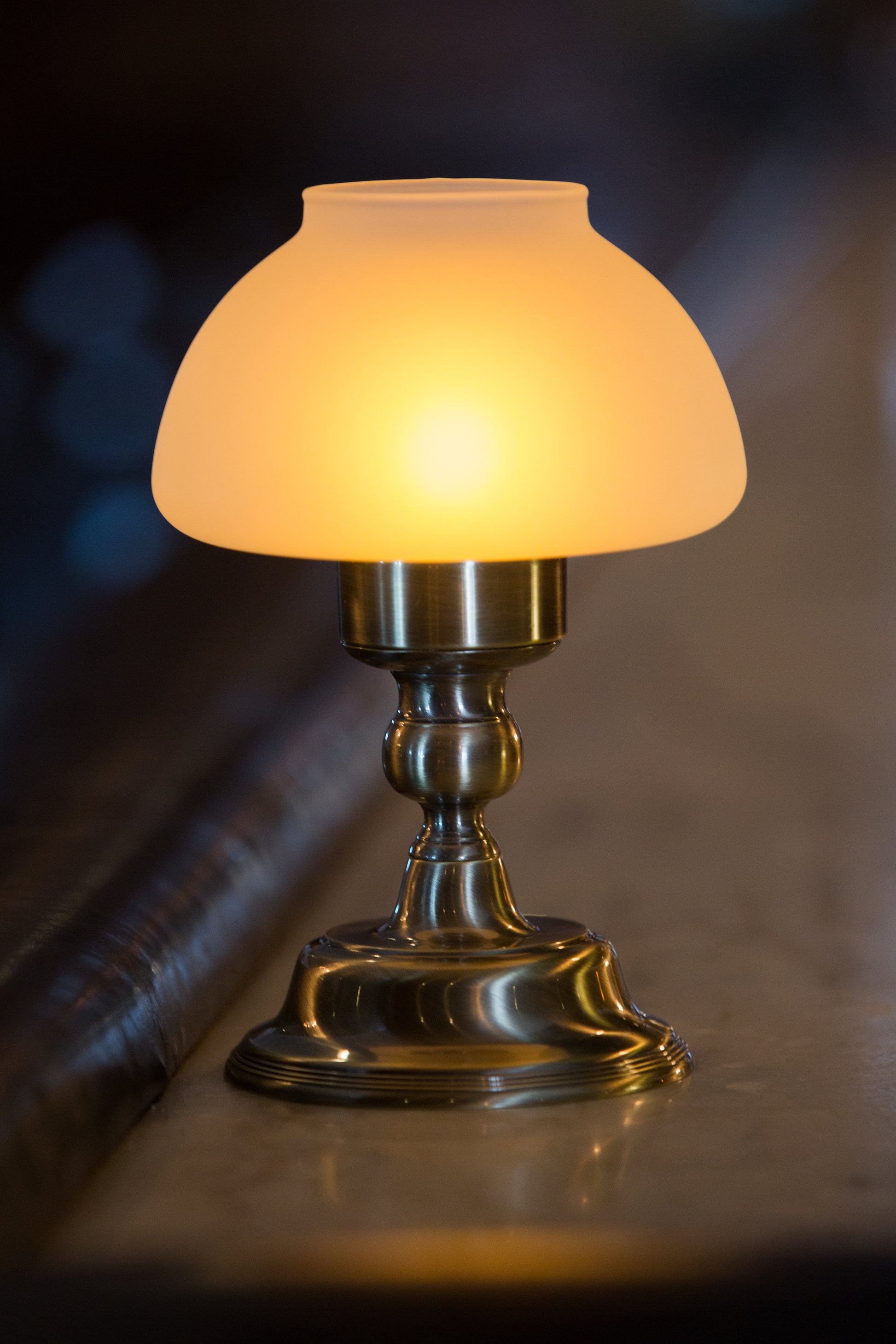 Designed to look like a traditional lamp. This candle lamp holder pairs with any of our rechargeable tealights as the light source. With a unique mushroom style frosted glass shade this candle lamp holder screams classy establishment.