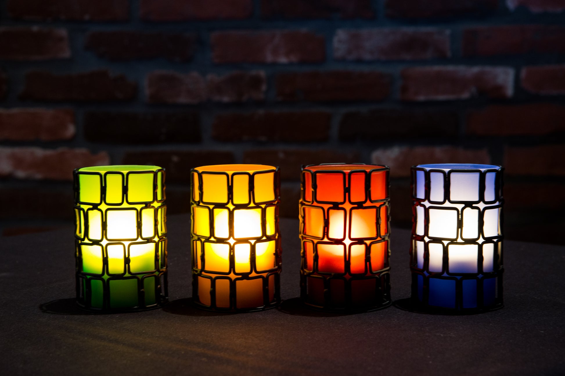 The Grid Iron candle holder features a striking square pattern available in five distinct color variations, it showcases a coated metal outer shell that ensures durability while maintaining a sophisticated aesthetic. The acrylic frosted insert enhances its design, making it an ideal candle holder for both indoor and outdoor settings.